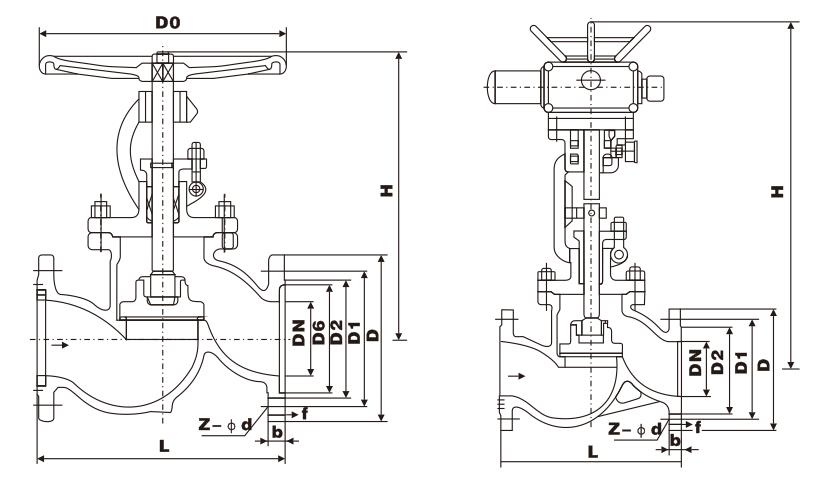 J41W不銹鋼截止閥16.0mpa主要連接尺寸及重量:
