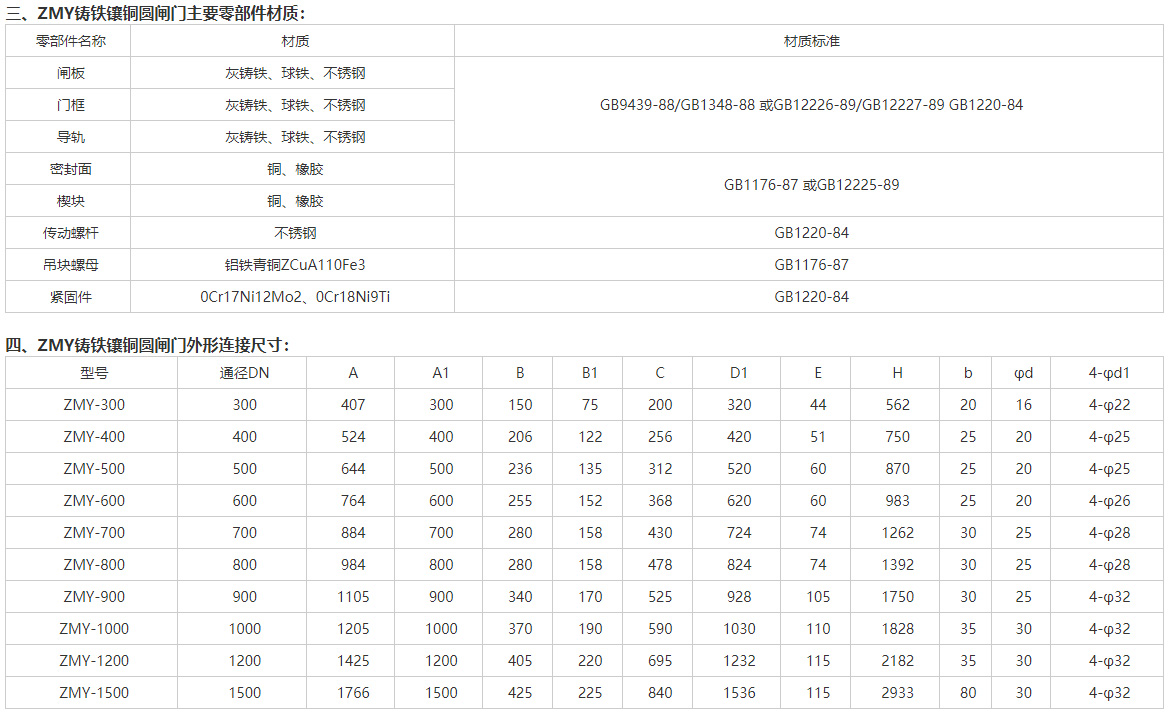 一、ZMY鑲銅鑄鐵圓閘門產(chǎn)品概述: