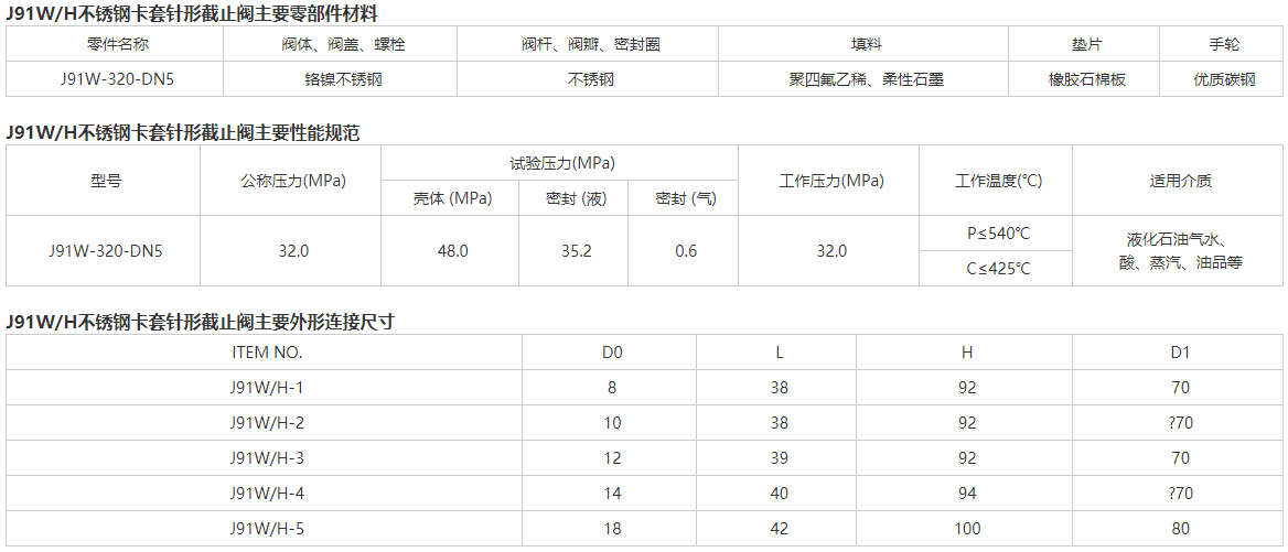 J91W/H 不銹鋼卡套針形截止閥