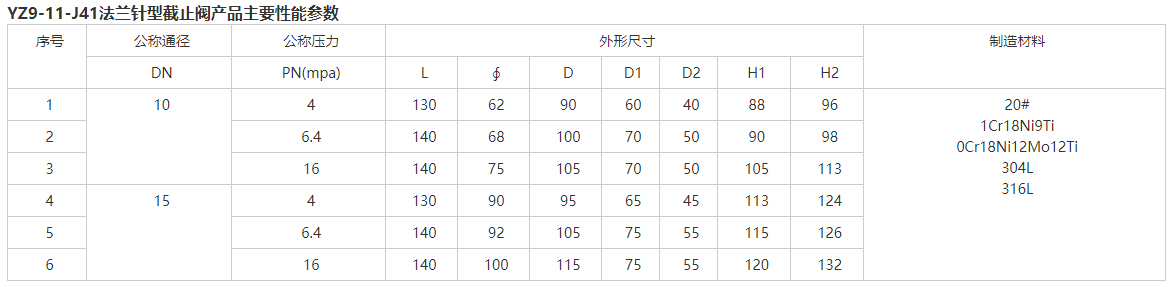 YZ9-11-J41 法蘭針型截止閥