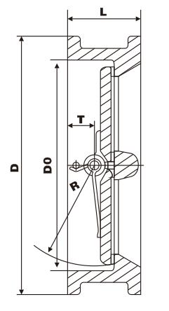 二、H76H/W對(duì)夾連接雙瓣旋啟式止回閥主要外形尺寸