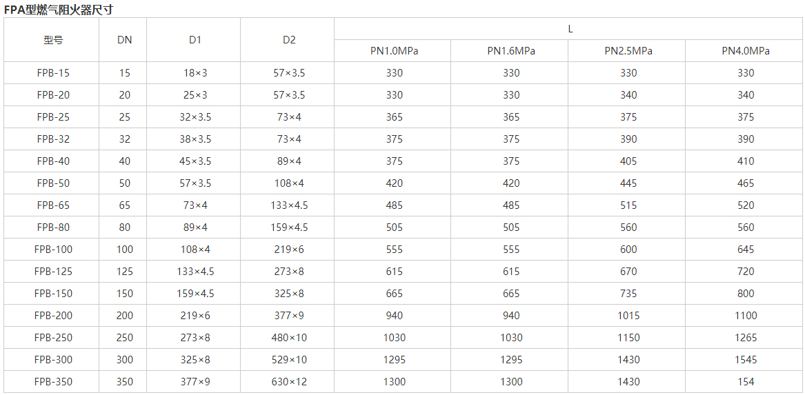 FPA燃氣阻火器主要性能