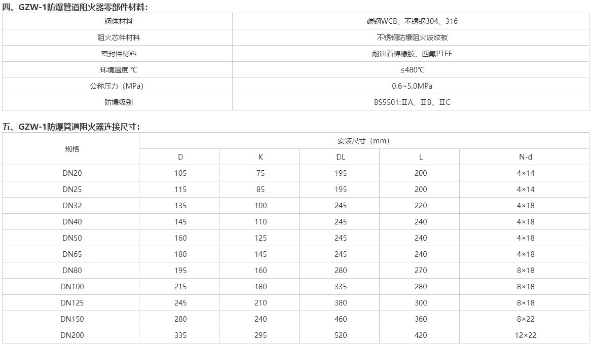 二、GZW-1防爆管道阻火器性能及特點(diǎn):